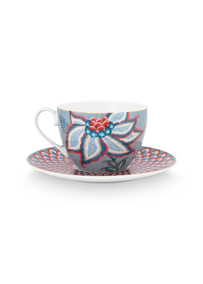 πορσελάνινο φλιτζάνι & πιάτο σε κόκκινο-μπλε floral σχέδιο με χρυσές λεπτομέρειες 280ml της εταιρίας pip studio. Πλήσιμο στο χέρι.