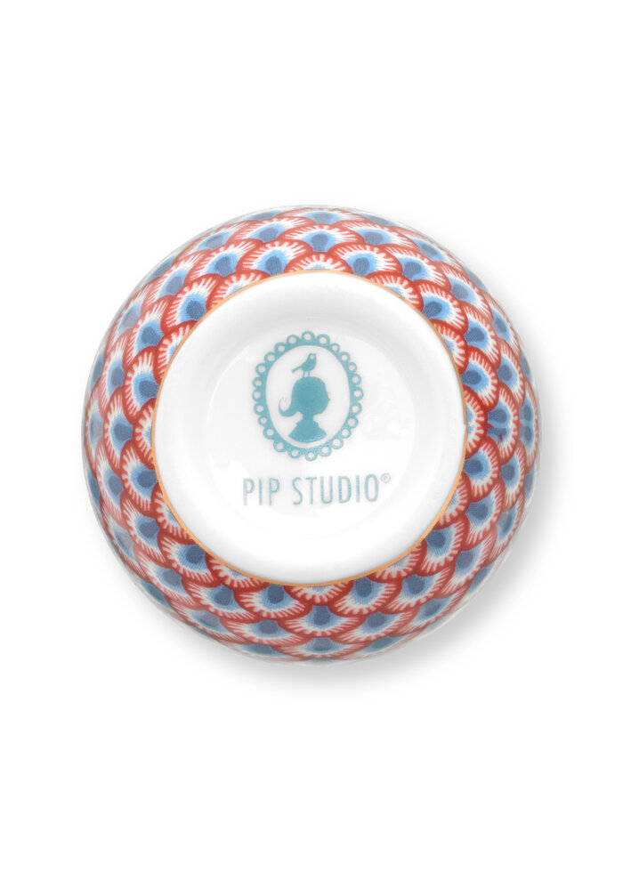πορσελάνινη αυγοθήκη σε γαλάζιο χρώμα με κόκκινες και χρυσές λεπτομλερειες, πλύσιμο στο χέρι.